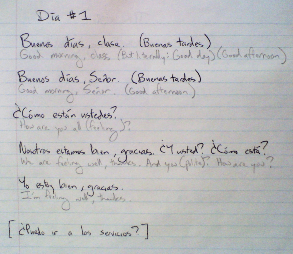 Posted on 02/13/202502/18/2025 by Spanish AceS1 Día 1 Basic greetings and how to ask to go to the bathroom Notes on Personal Pronouns Notes on Gustar, Encantar, and Fascinar Related